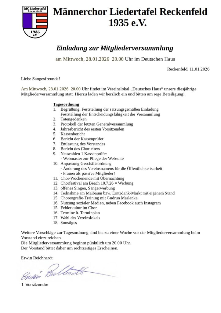 Jeden Mittwoch treffen wir uns ab 19.45 Uhr im Deutschen Haus in Reckenfeld zur gemeinsamen Probe.